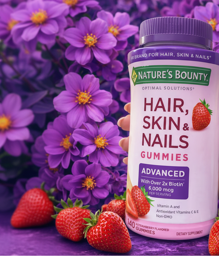 Los suplementos de Biotina, Colágeno y Vitaminas del complejo B son excelentes para la salud del cabello, piel y uñas. Nature's Bounty ofrece fórmulas especializadas como "Hair, Skin & Nails" que combinan estos nutrientes esenciales para resultados visibles.
